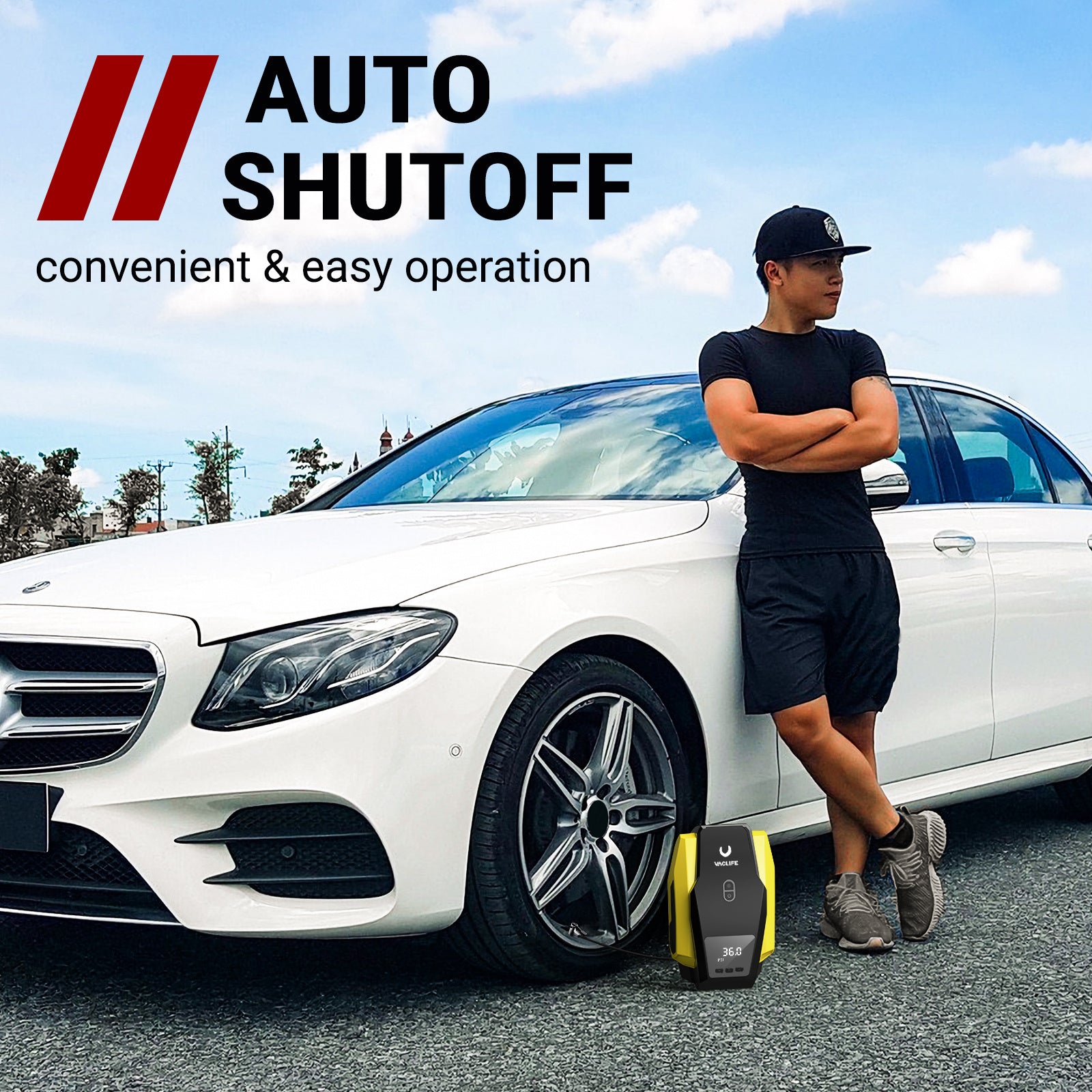 • [Automatic Shutdown] The portable air compressor is based on the automatic shutdown function, providing you with a reliable user experience. Set the required pressure level and start the inflation operation. When our car tire inflator reaches the required pressure, the car air compressor automatically turns off, so you don't have to worry about over inflation.